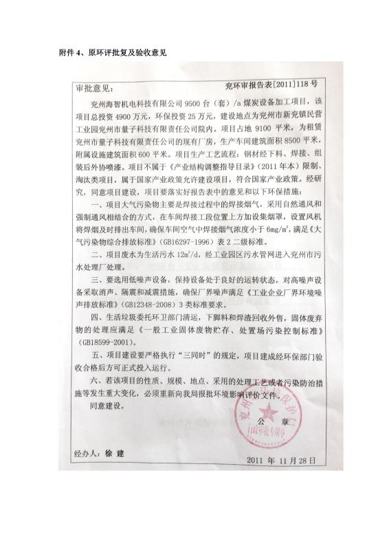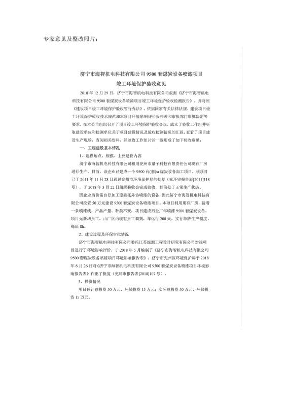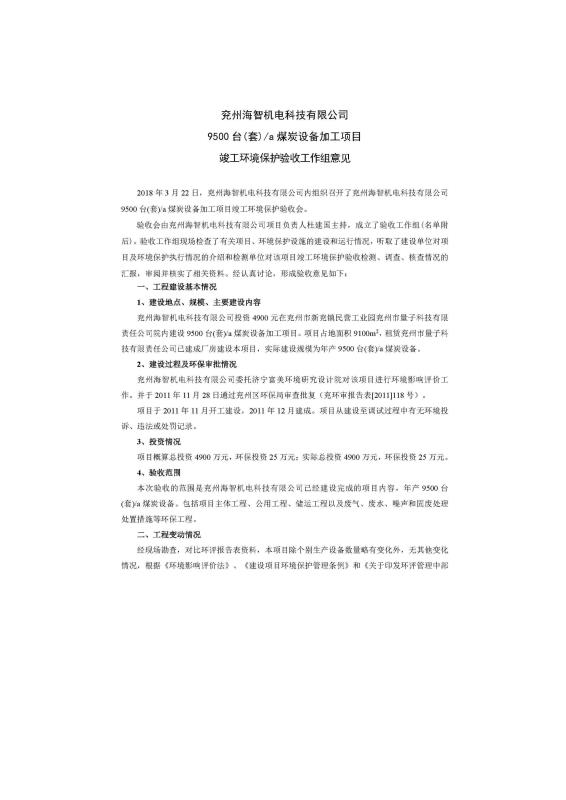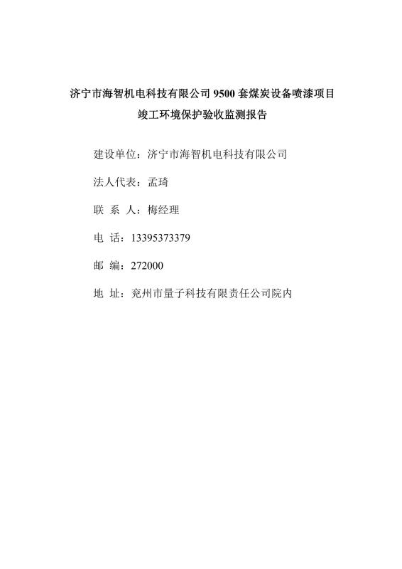 9500套煤炭設(shè)備噴漆項(xiàng)目竣工環(huán)境保護(hù)驗(yàn)收監(jiān)測(cè)報(bào)告