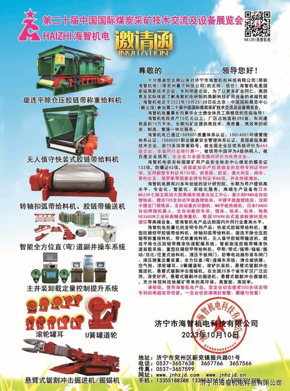 > 邀請(qǐng)函-第二十屆中國(guó)國(guó)際煤炭采礦技術(shù)交流及設(shè)備展覽會(huì)2023.10.25-28